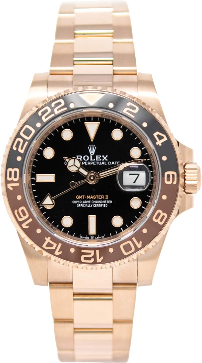 Rolex GMT-Master II 126715 18K Rose Gold Watch Black Dial Black and Brown Rotatable Bezel UNWORN